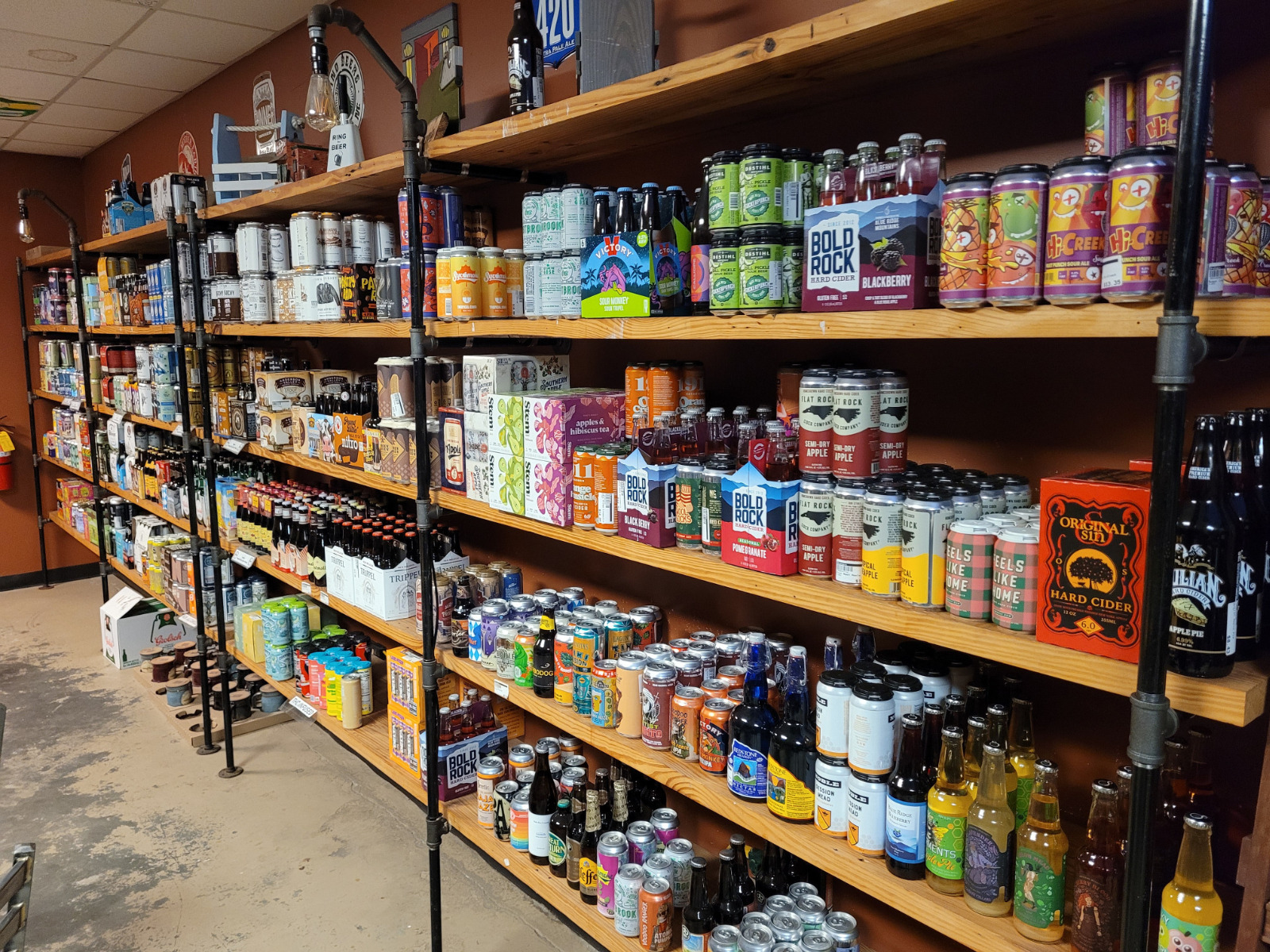 Visit our tasting room and bottle shop to discover a wall of beer, wine, cider, and mead that you are unlikely to find at any grocery store. And our selection is not limited to our beverages... we also have fine cigars. Our selection is constantly changing, so stop by to see the latest seasonals, sours, IPAs, and hard-to-find favorites.